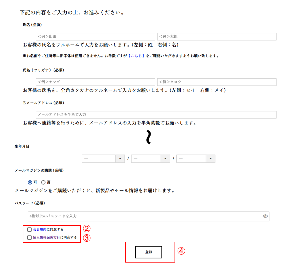➁「会員規約に同意する」の左☐をクリックしてください。