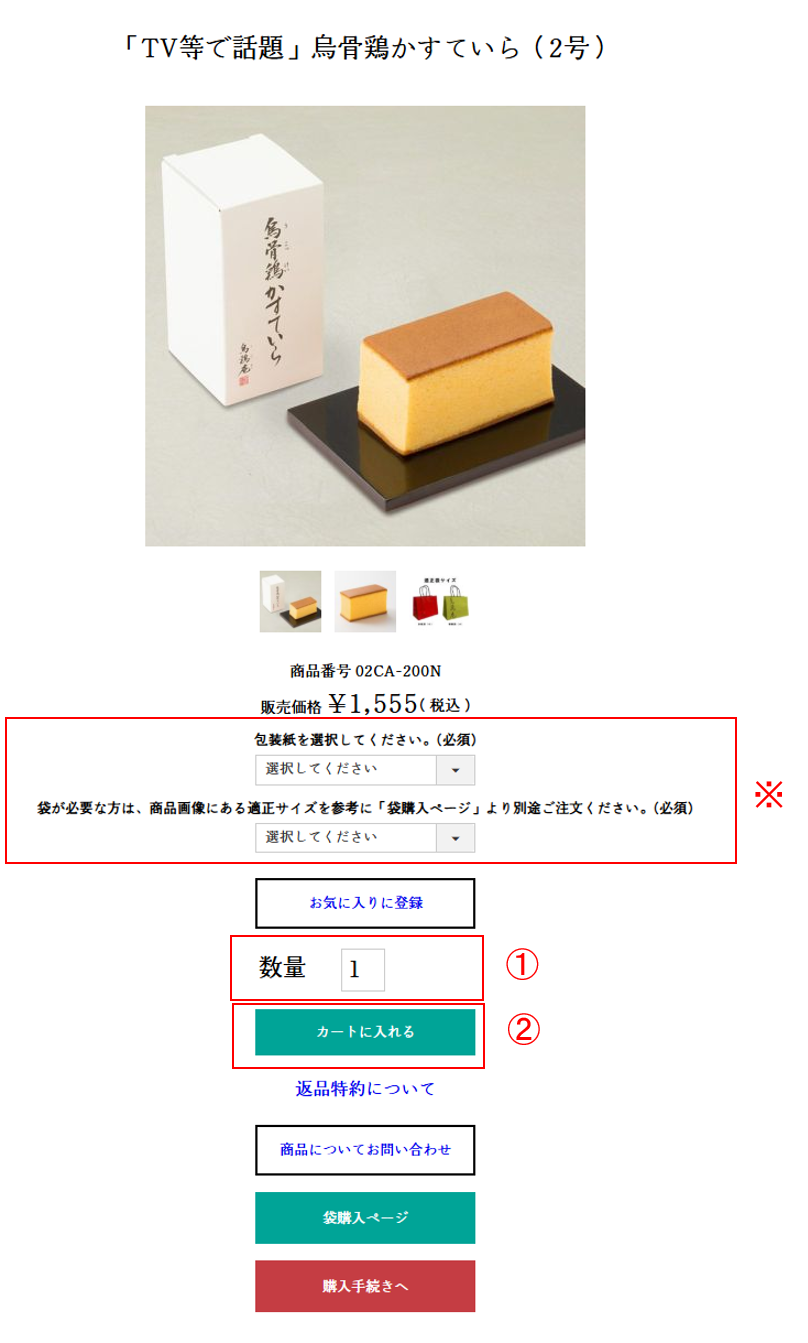 ➀数量を変更される場合は、「数量」をクリックしてください。