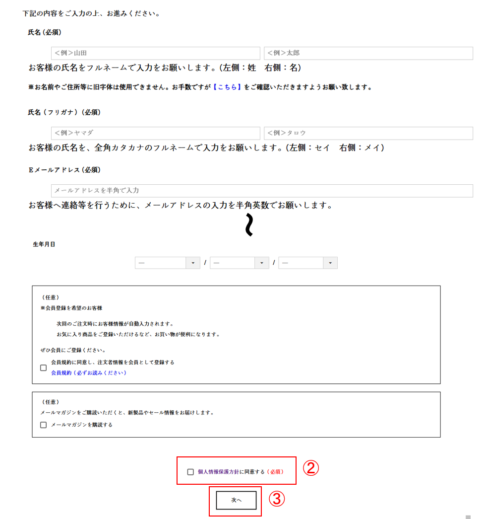 STEP4お客様情報を入力する(会員登録をされていないお客様)