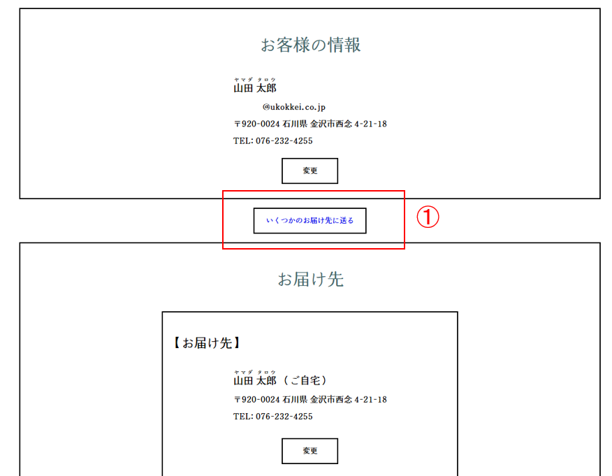 ➀「いくつかのお届け先に送る」をクリックしてください。